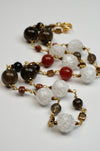This natural stone necklace is made with smoky quartz, carnelian, rock crystal, garnet, and golden sap stone, inspired by the colors of winter's arrival. silver plated